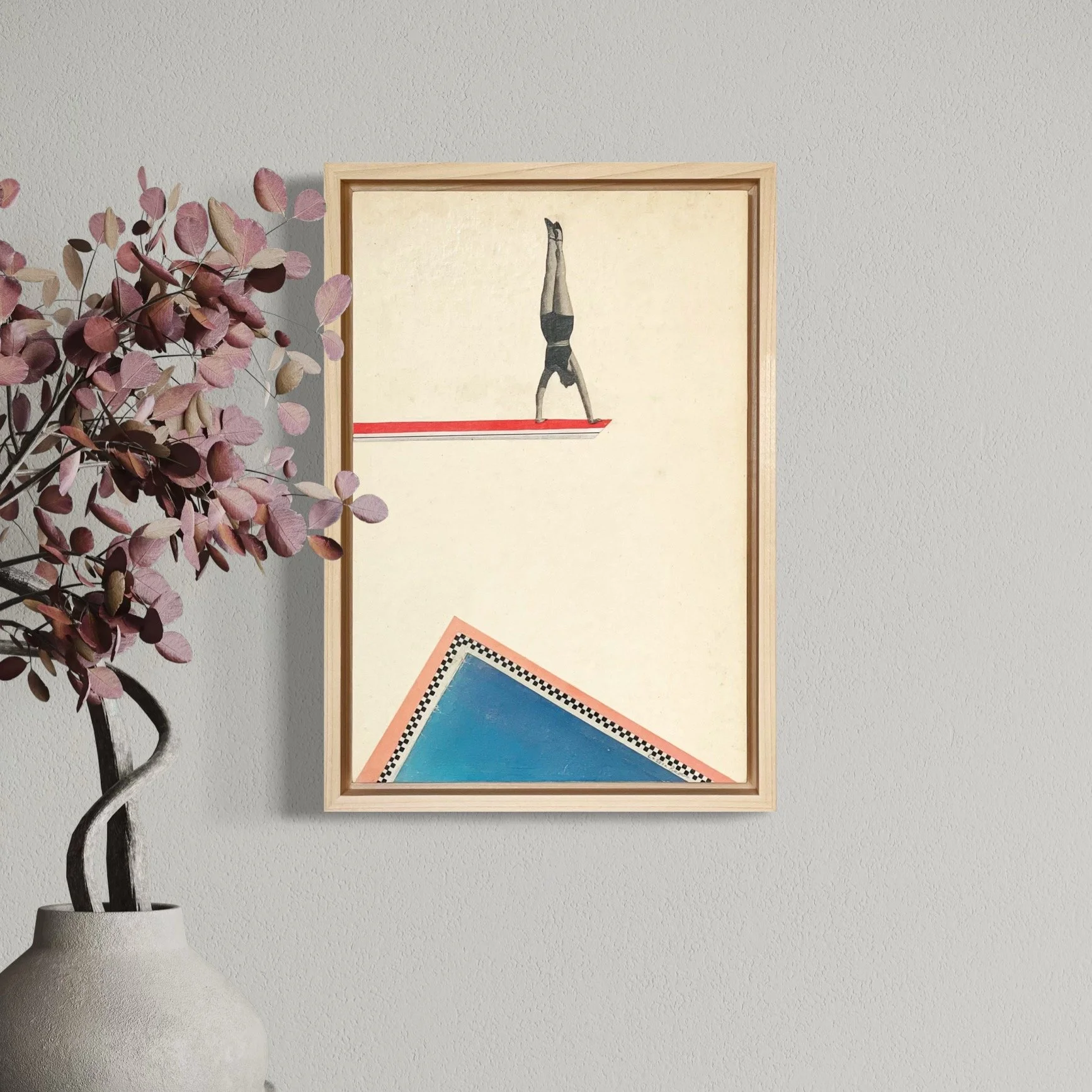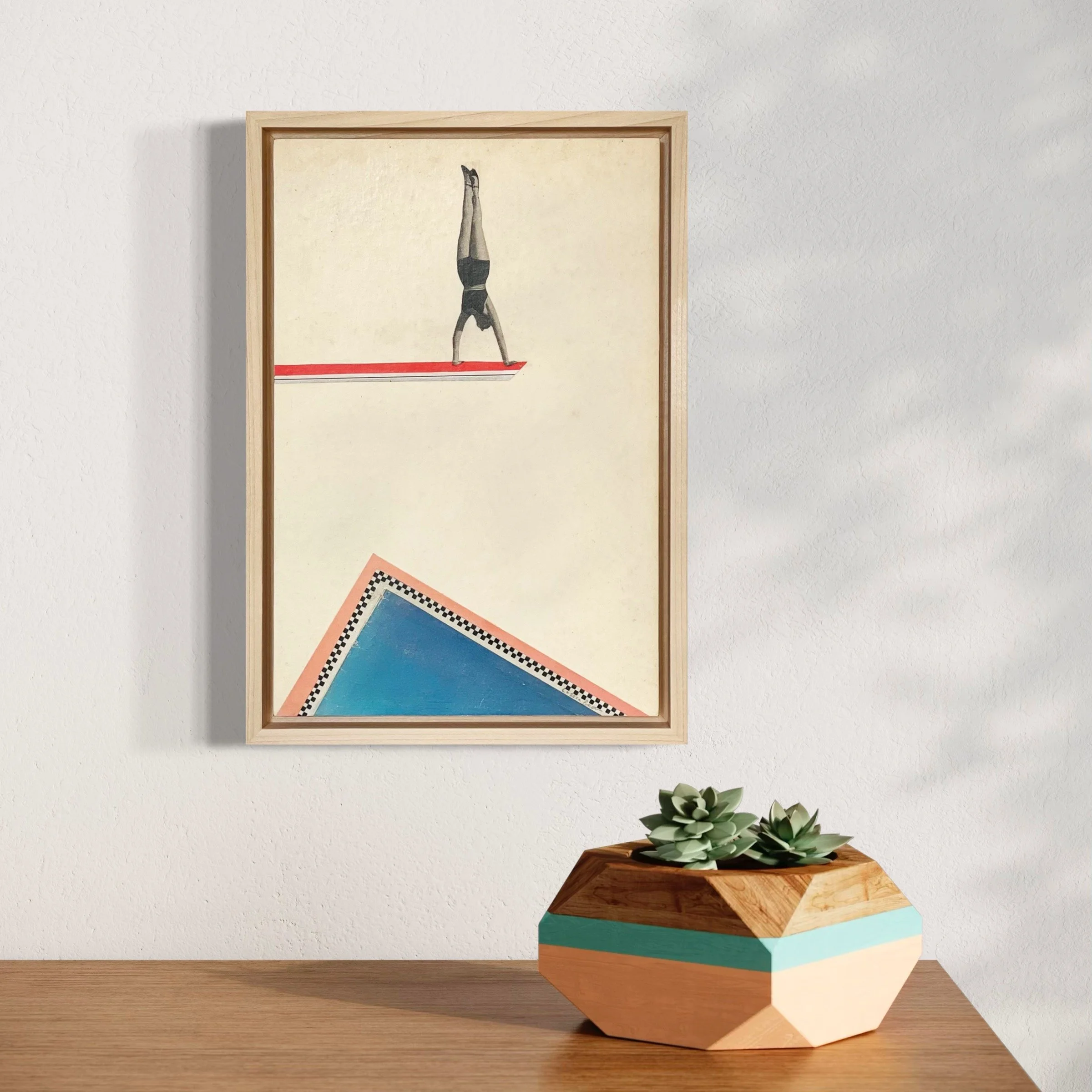 This artwork is float-mounted within a dark grey stained wood frame, set back from the glass. The frame is strung and ready to hang.